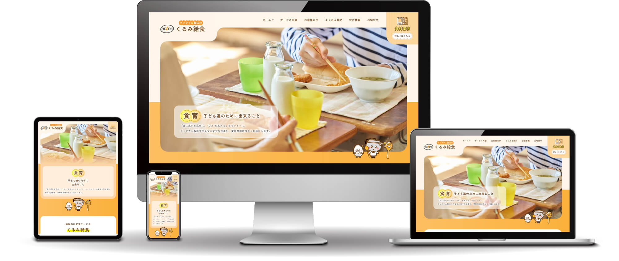 愛知県岡崎市を拠点に、施設向けの配食サービスとしてパック食、お弁当、食缶をお届けしている『くるみ給食』様のホームページを作成させていただきました。